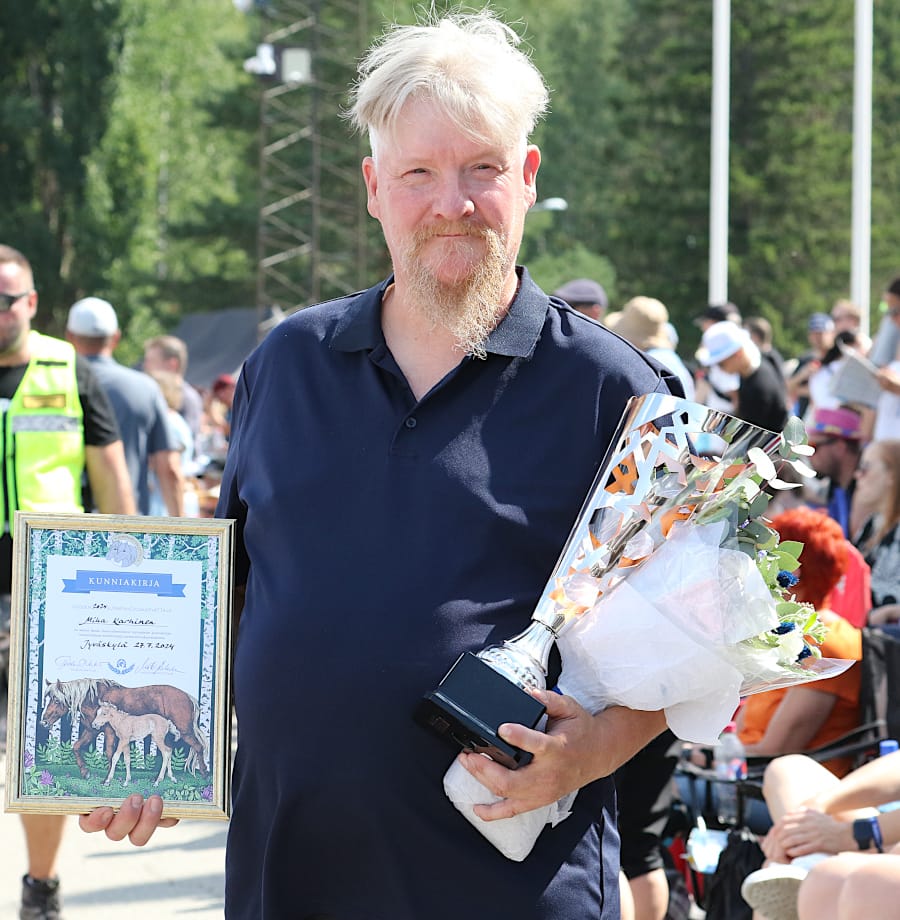 Vuosikokouksen yhteydessä huhtikuussa palkitsimme vuoden 2023 parhaat suomenhevoset eri ikäluokista ja lajeista sekä parhaan suomenhevosvalmentajan. Hevosurheilulehti lahjoitti 100-vuotisjuhlavuotensa kunniaksi lukijamatkansa tuotoista peräti 3500 euroa liitolle. Luovutimme Hevosurheilun lahjoituksen edelleen Hevostietokanta ry:lle, joka tekee tärkeää työtä suomenhevosta koskevan tiedon taltioimiseksi Sukuposti-tietokannassa.